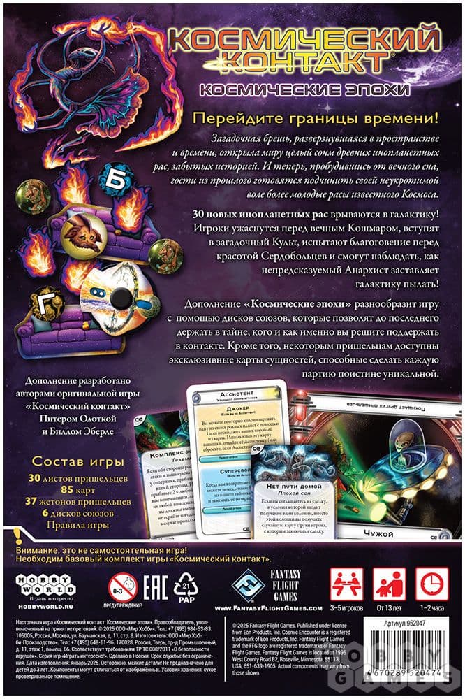 Издательство Hobby World открыло предзаказ на дополнение «Космические эпохи» для настольной игры «Космический контакт». Уже сейчас его разрешат купить за 2490 рублей.