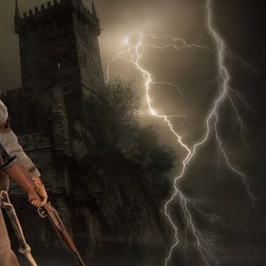 Статуя изображает Эша Уильямса, сражающегося со скелетами. В одной руке главный герой держит знаменитую бум-палку (двуствольное ружьё IGA «Stoeger Coach Gun»), а в другой (вместо бензопилы у него на этот раз механический протез руки) – проклятую книгу мертвых под названием «Некрономикон».