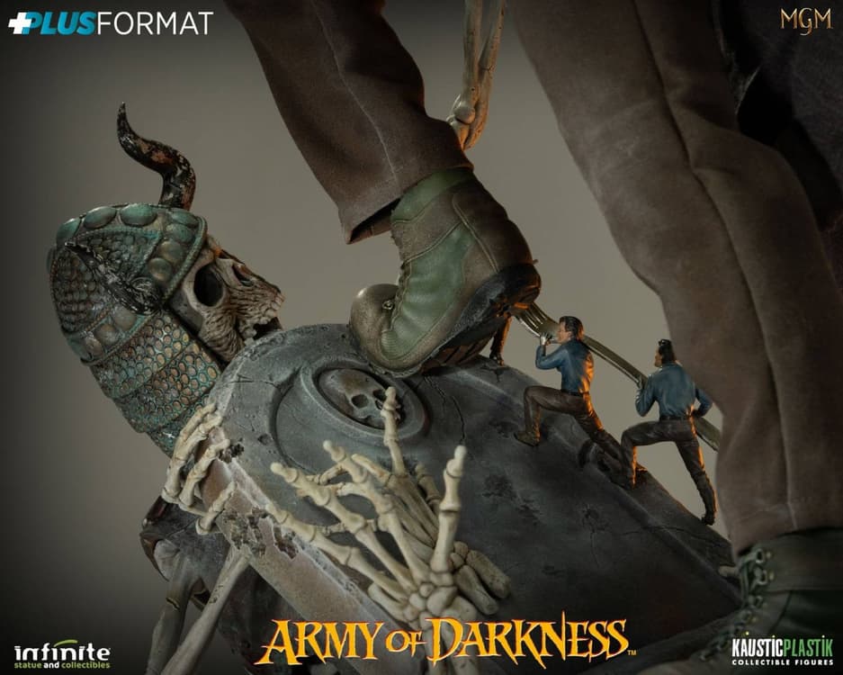 Во время Spielwarenmesse – международной выставки игр и игрушек, товаров для хобби и досуга, студии Infinite Statue и Kaustic Plastik протизерили анонс новой статуи Эша из фильма «Зловещие мертвецы 3: Армия тьмы» в масштабе 1/4.