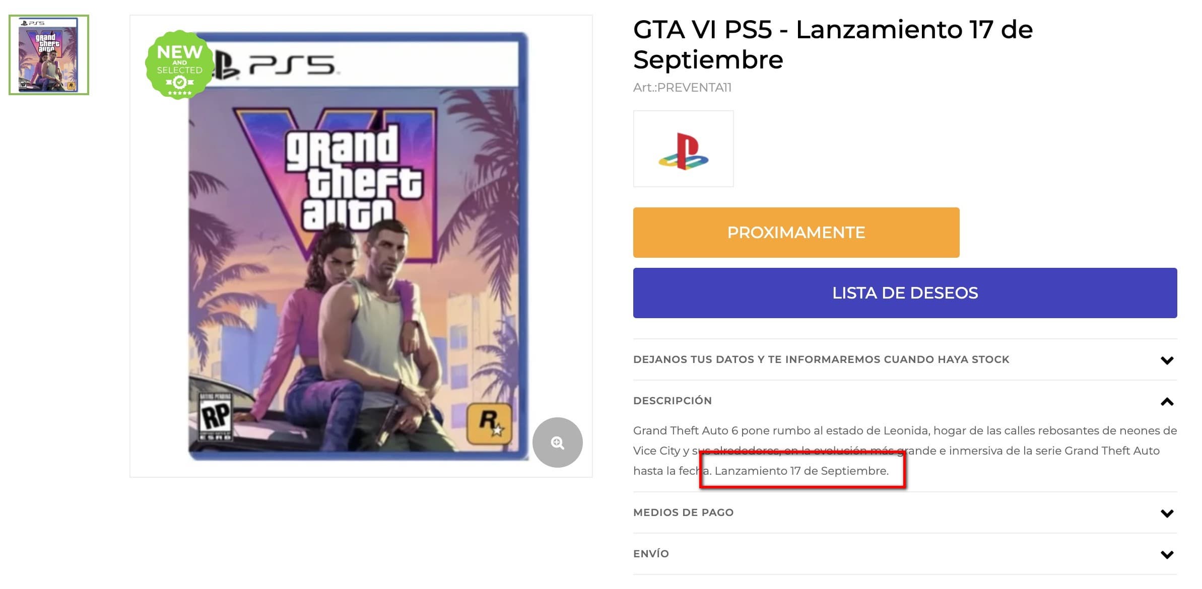 Магазин XUruguay ненароком раскрыл дату релиза Grand Theft Auto 6 — 17 сентября 2025 года. Это совпадает с планами Take-Two и Rockstar выпустить игру осенью 2025 года. Если информация подтвердится, то выход шестой части GTA состоится ровно через 12 лет после выхода Grand Theft Auto 5.