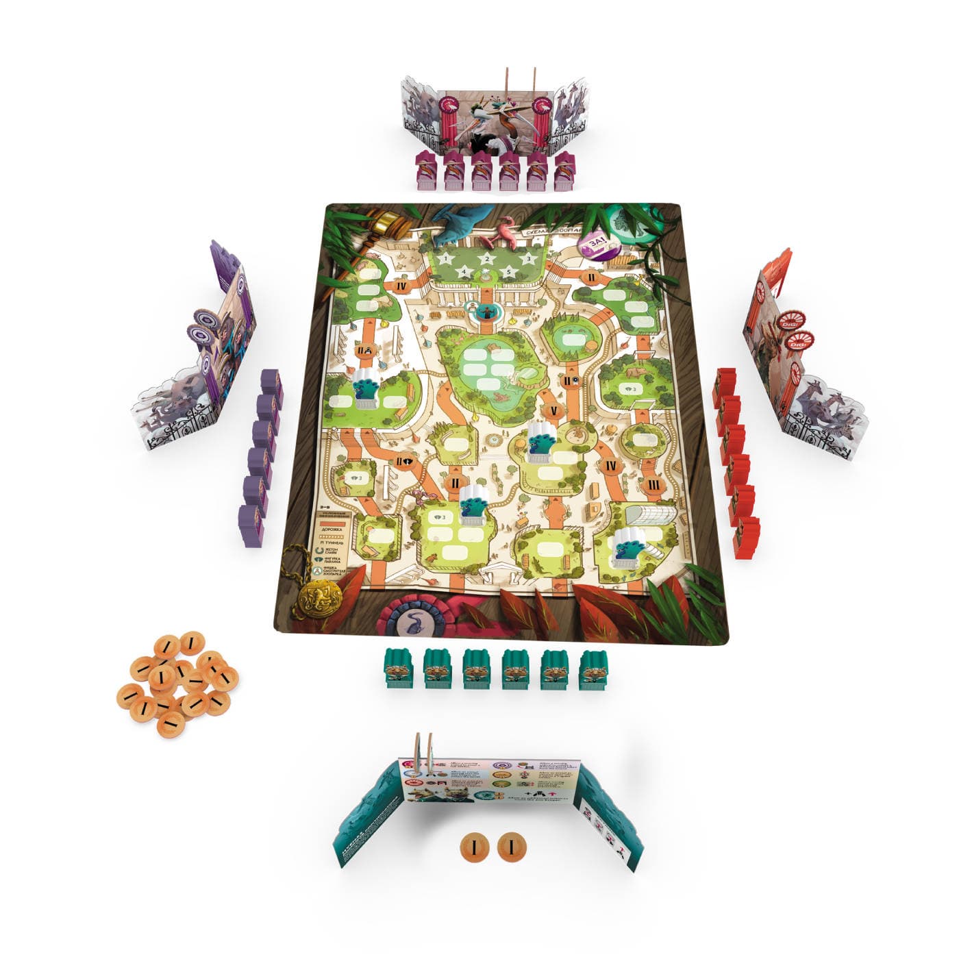 Игровая сессия в данной настолке занимает 45-60 минут, и победителем станет тот, кто достигнет наибольшей славы и успеет занять место в Главном вольере.