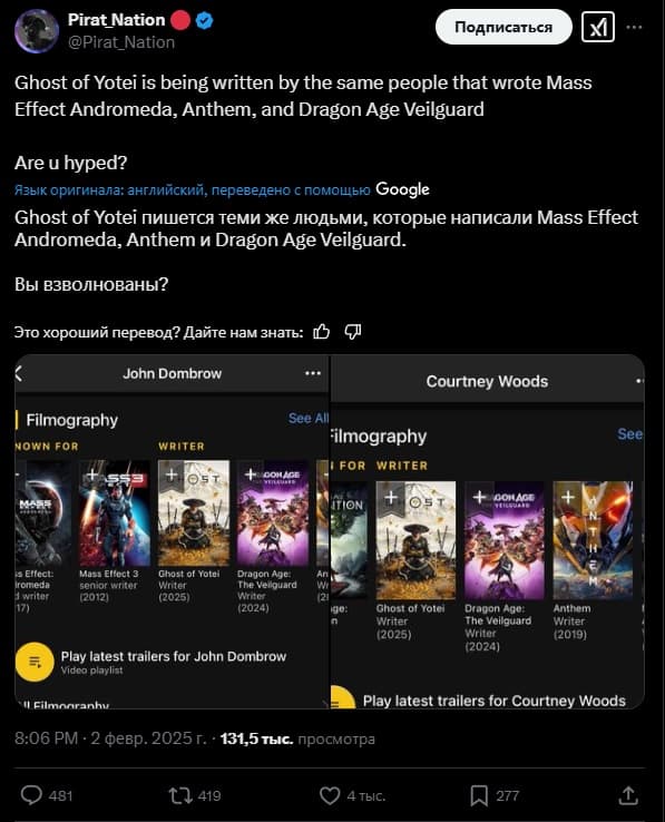 Sony, возможно, столкнется со сложностями продвижения Ghost of Yotei. Игра разрабатывается командой, в которой есть авторы Dragon Age: The Veilguard.