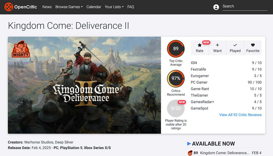 Недавно Kingdom Come Deliverance 2 выставили оценки игровые журналисты. Далеко не все из них порадовали создателя игры.