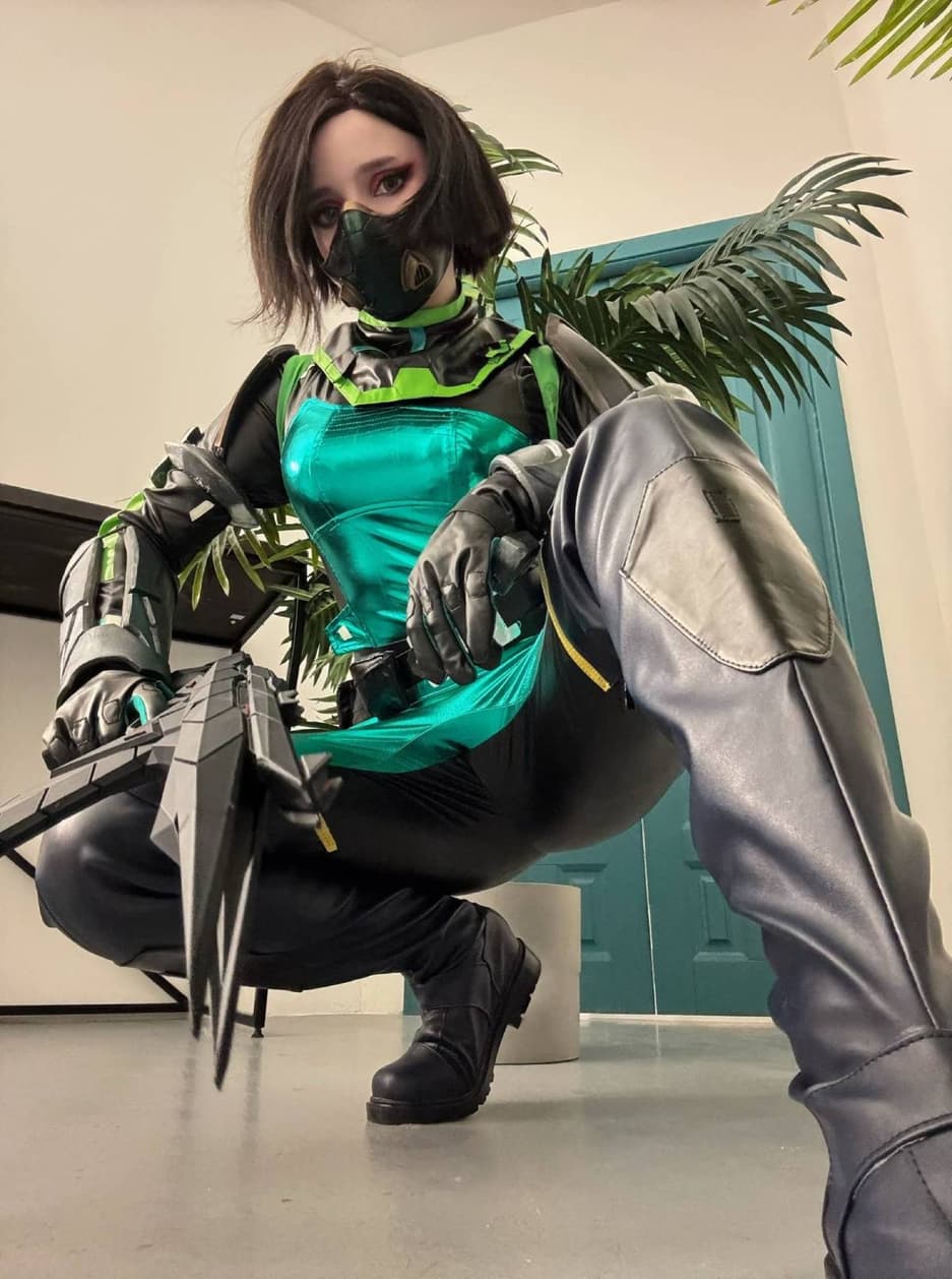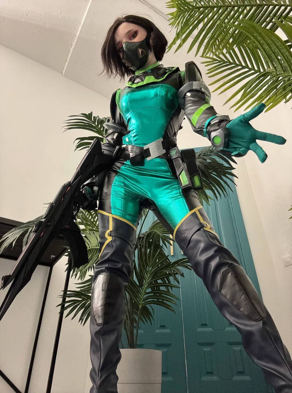 Косплеерше Accola удалось перевоплатиться в агента-специалиста Viper из сетевого шутера Valorant, который устанавливает контроль над полем боя с помощью источающих токсичный газ устройств.