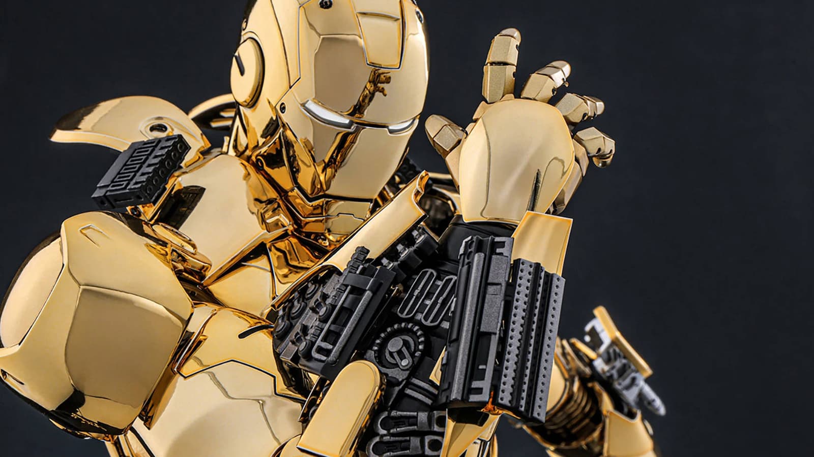 Специально для людей, обожающих блестящие вещи и супергероев, студия Hot Toys собирается выпустить фигурку Железного человека в броне Mark III, на которую нанесли хромированную краску золотого цвета.