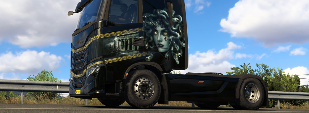 SCS Software с DLC Greek Mythology Pack добавляет в Euro Truck Simulator 2 комплект покрасок, выполненных в стиле легендарных существ из греческой мифологии: