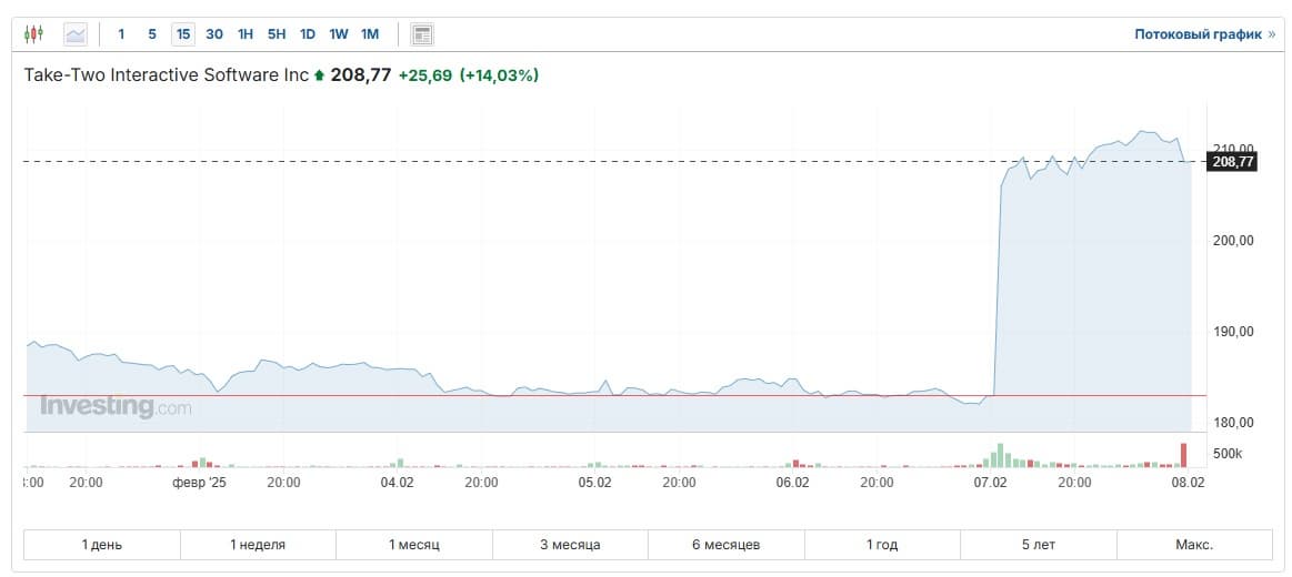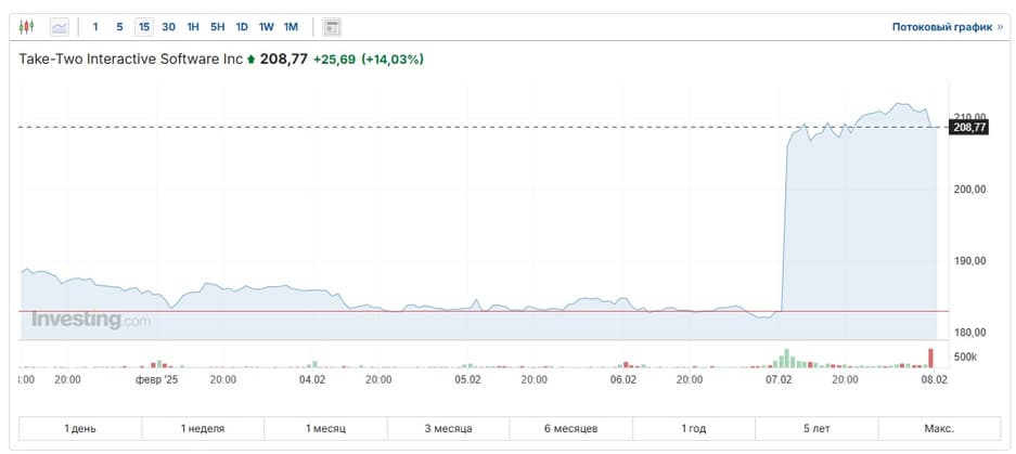Акции Take-Two Interactive выросли на 15% после того, как компания подтвердила выход GTA 6 в 2025 году. Генеральный директор Take-Two Штраус Зельник на встрече с инвесторами заявил, что релиз игры запланирован на осень 2025-го.