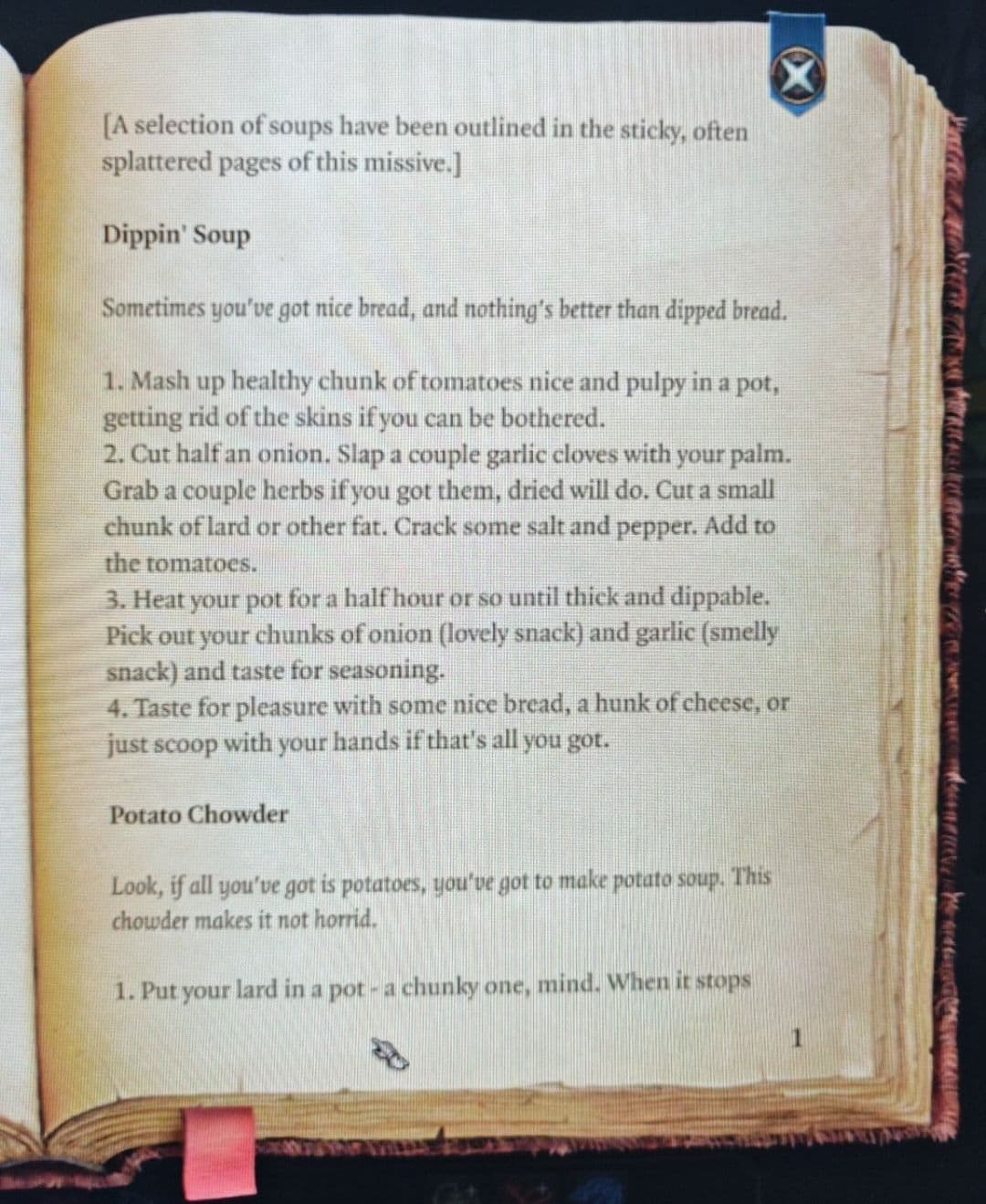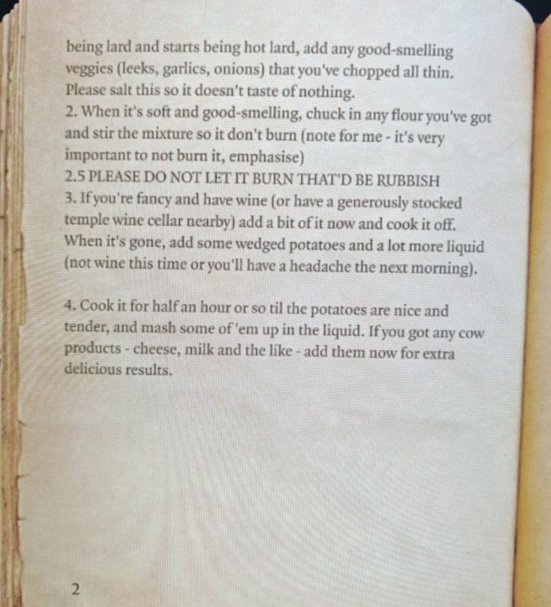 Рецепт найден в борделе. В книге не было ничего странного или несъедобного. Суп действительно получился съедобным, пусть и не самым привлекательным на вид.