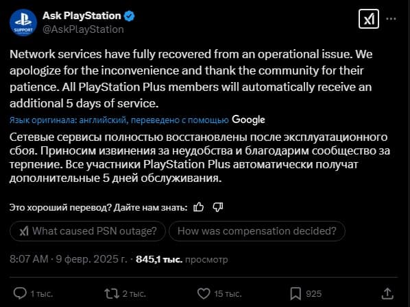 Sony не объяснила причины проблемы, заявив лишь о «техническом сбое». Некоторые игроки опасались, что PSN мог стать жертвой кибератаки, но пока компания не подтвердила эту версию.