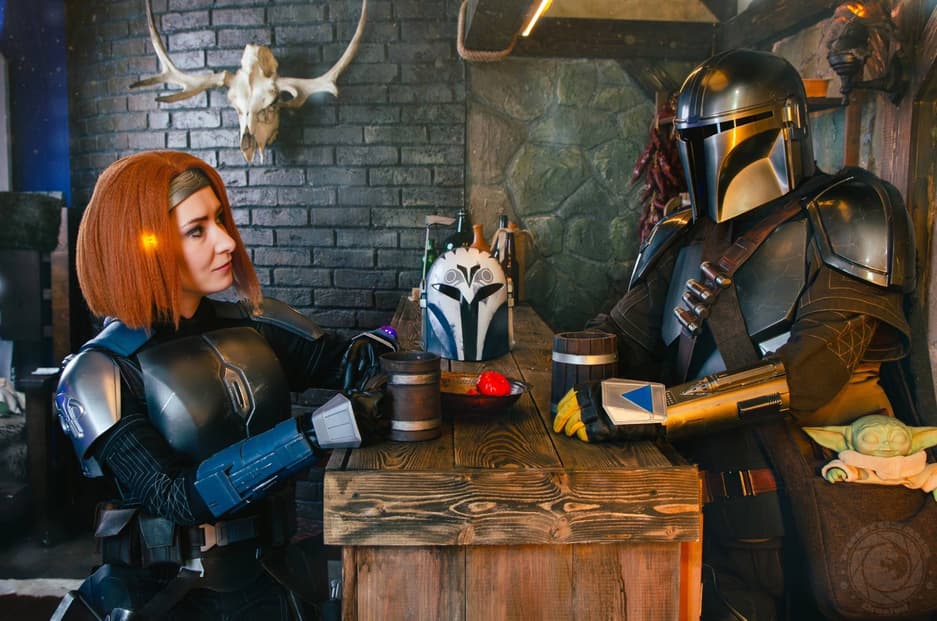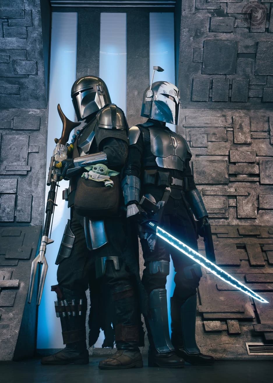 Косплеерам Ане «Gingeran» Федоренко и Дмитрию Петрову тоже нравится эта вселенная. Во время специальной фотосессии, которую провел фотограф Денис «КРАФТОЗАВР» Короленко, они превратились в Дина Джарина (Мандо) и Бо-Катан Крайз из сериала «Мандалорец».