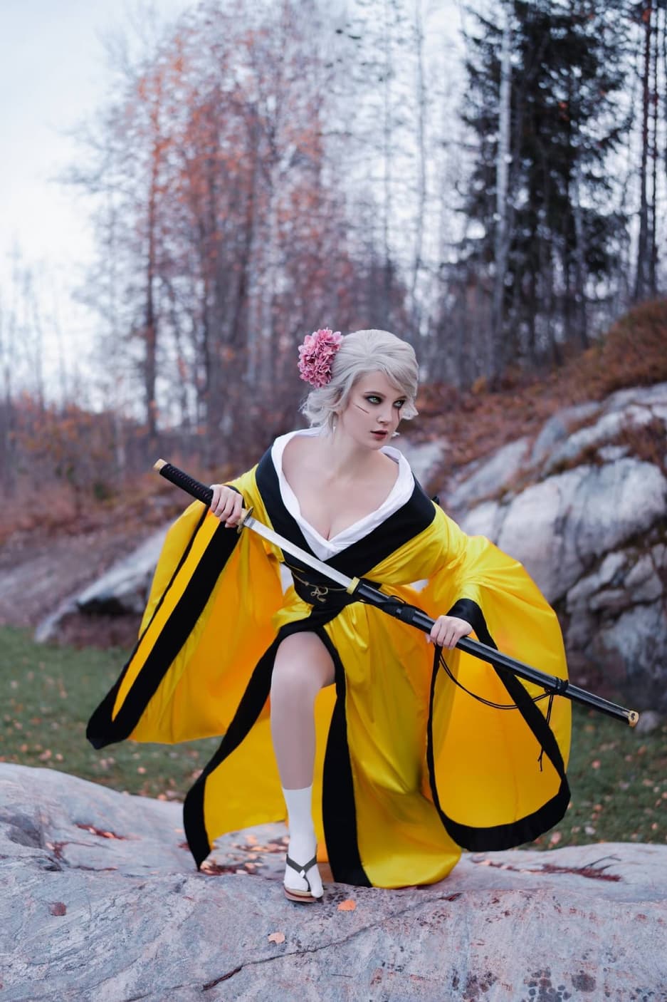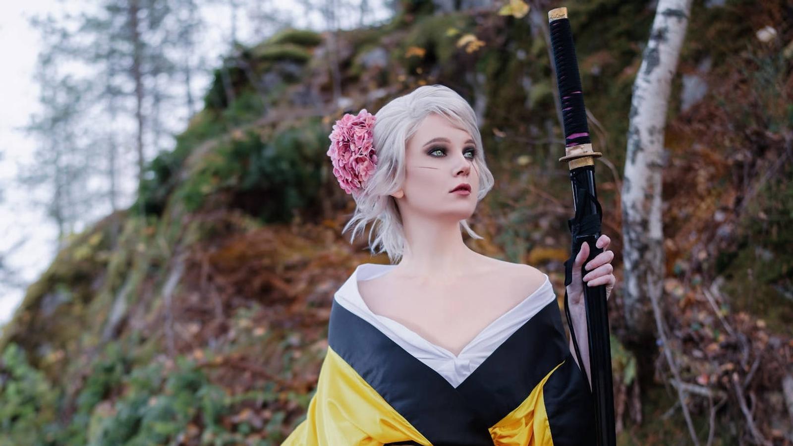 Модель Оксана Станкевич тоже показала косплей Цири из экшен-RPG «Ведьмак 3: Дикая Охота». Но на этот раз она предстала не в классическом наряде беловолосой охотницы на чудовищ, а в кимоно и с катаной наперевес.