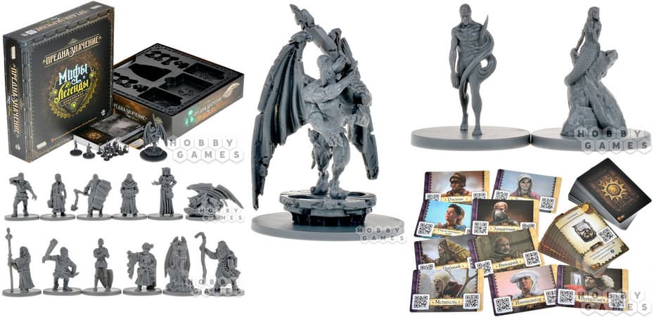 Благодаря этому дополнению у людей будет шанс оценить три новых сценария и столкнуться с феей-русалкой Мелюзиной, трикстером Биттергейлом, гаргульями, доппельгангерами и другими волшебными существами. Комплектация «Мифов и легенд» выглядит так: 36 фрагментов карты, девять карт предназначений, 46 карт предметов и 15 фигурок персонажей.