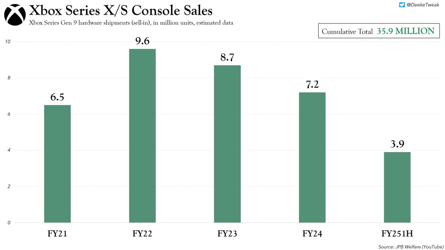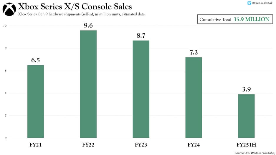 - На основе независимых оценок, консоли Xbox Series X/S могли быть поставлены в объеме до 35,9 миллионов штук.