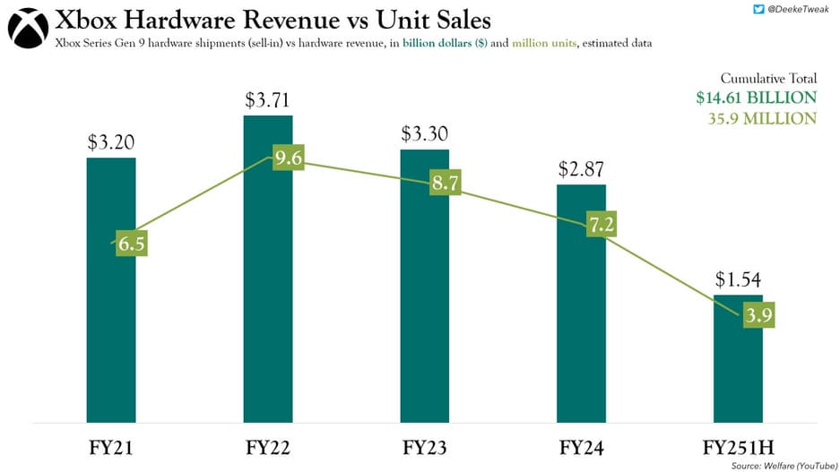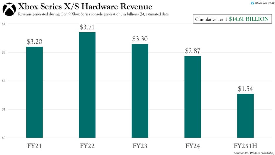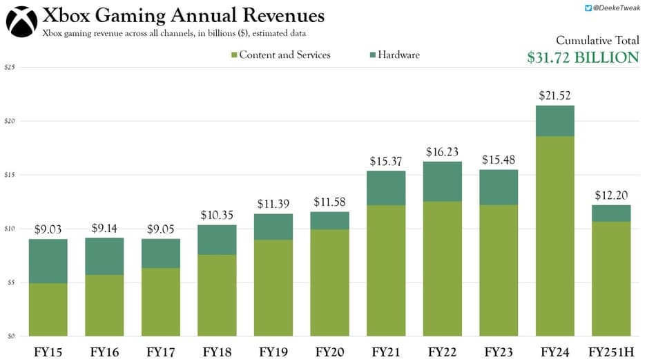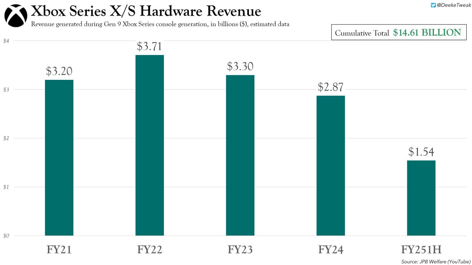 С момента выхода Xbox Series X/S в ноябре 2020 года, Microsoft заработала более $80,8 миллиардов за пять финансовых лет. Эта сумма включает выручку от продажи устройств и игр, подписок и микротранзакций.
