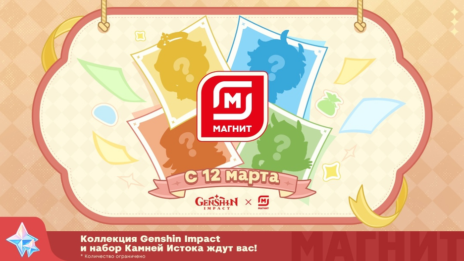«Genshin Impact × сеть магазинов «Магнит»: Совместное событие уже скоро! Событие начнётся с 12 марта. Следите за объявлениями».
