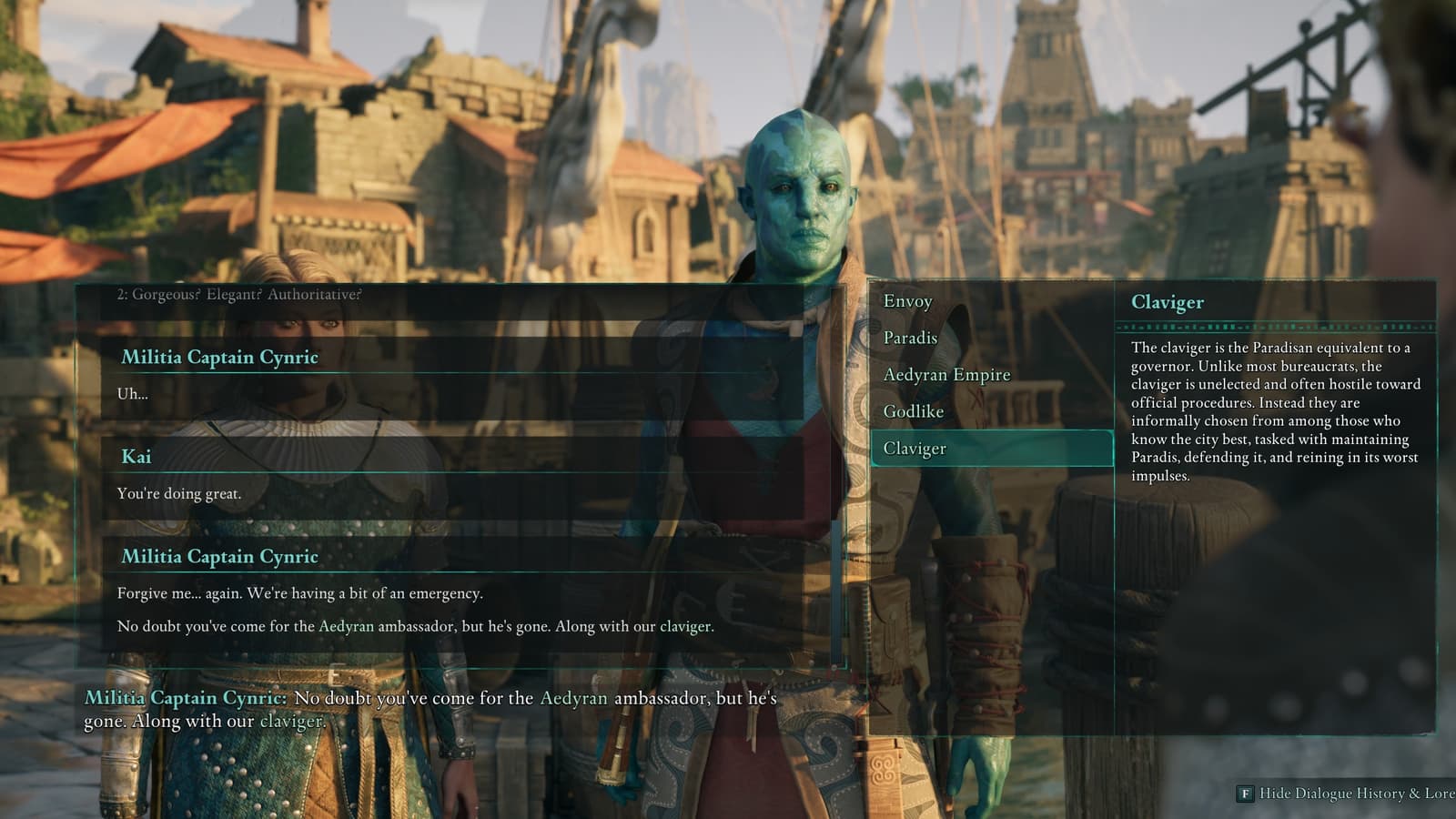 Это нельзя назвать нововведением, ведь нечто похожее есть в Pillars of Eternity, Tyranny и других играх, но назвать стандартом нельзя. Функция значительно улучшает восприятие сюжета, не отвлекая от геймплея. Многие ролевые системы используют лор (описание вселенной), но обычно информация о мире скрыта в глубинах меню, где приходится читать длинные тексты. В Avowed всё сделано проще: нужные объяснения доступны во время диалогов.
