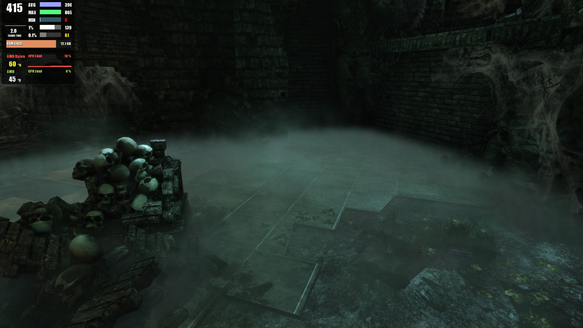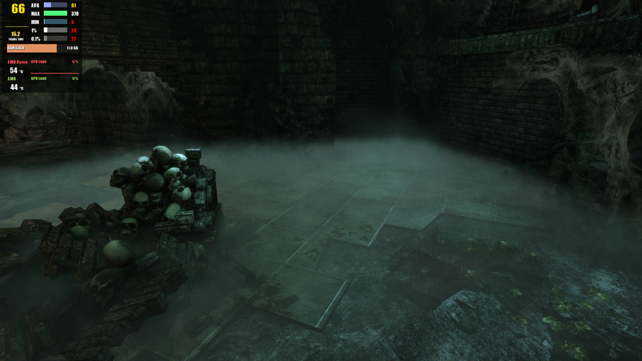 - Разбивание нескольких окон без 3050: упало до 12 FPS и держалось на этом уровне 49 секунд, пока разлетались стекла