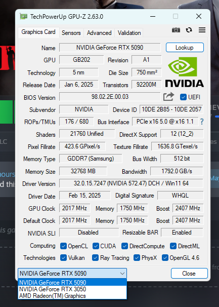 Пользователь под ником jerubedo предложил апгрейд ПК — теперь его системе GeForce RTX 5090 работает вместе с GeForce RTX 3050.