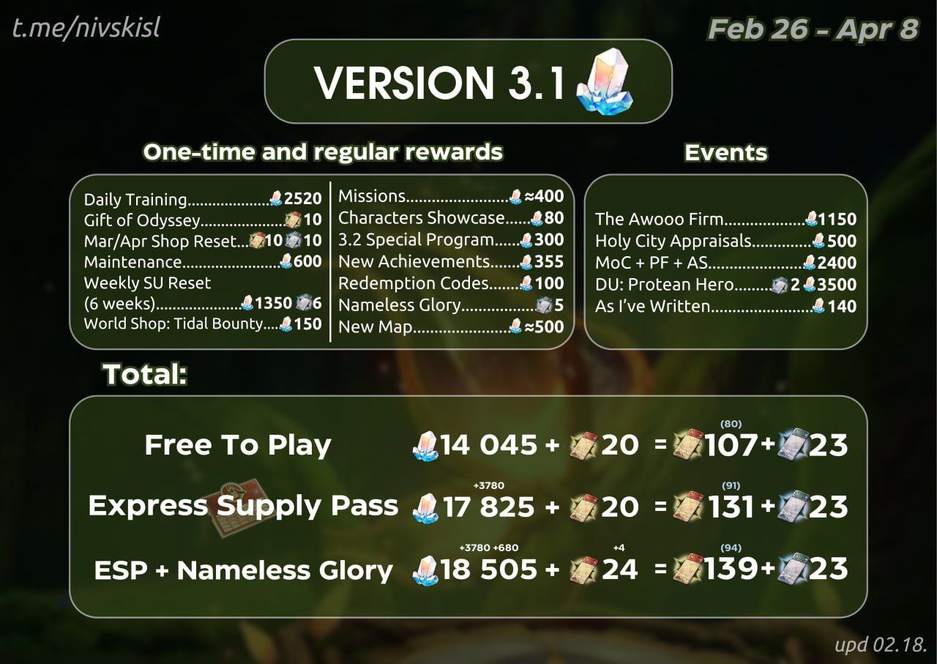 - Без доната: 14 045 Звёздного нефрита + 20 Особых звёздных пропусков (или 107 круток; // прыжков).