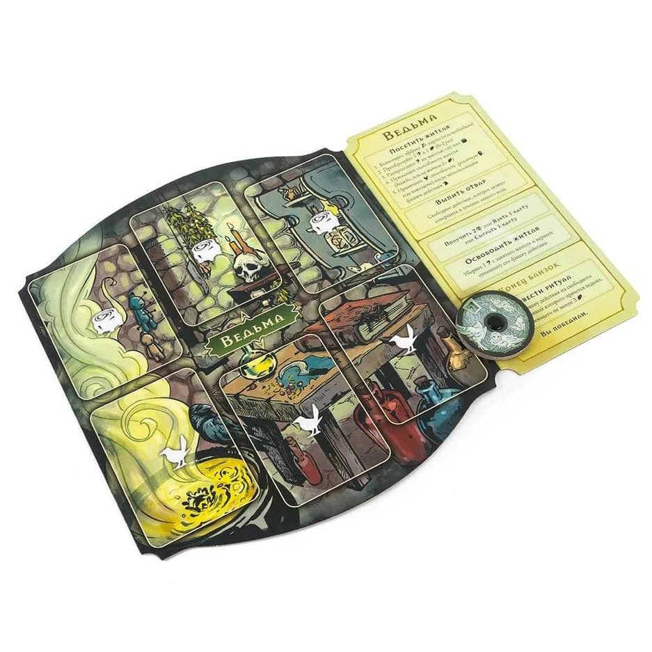 «По ту сторону изгороди» и «Испытания древних» вводят в игру дополнительные карточки, а также два новых игровых элемента – мрак (ресурс, дающий бонусы ведьме) и очищение.