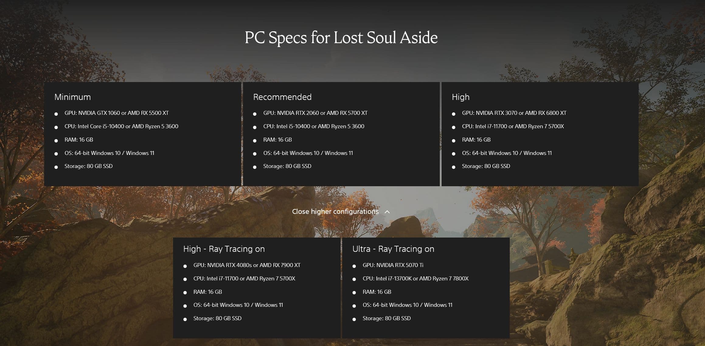 Чтобы запустить игру на ультра-настройках с трассировкой лучей, потребуется Core i7-13700K или Ryzen 7 7800X, 16 ГБ ОЗУ и RTX 5070 Ti. Во всех случаях нужно 80 ГБ места на SSD.