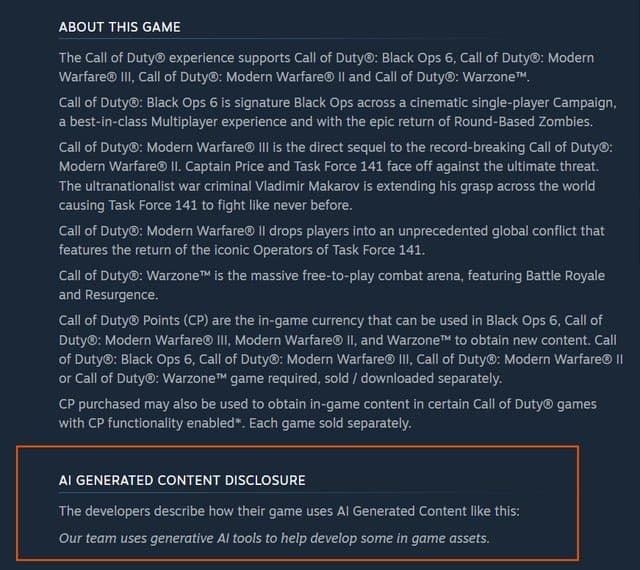 Информация появилась на странице игры в Steam, где указано, что команда использует генеративные инструменты ИИ для разработки некоторых игровых объектов.
