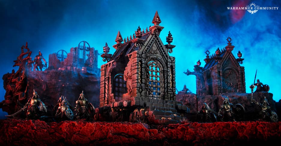 Разработчики настольной игры Warhammer Age of Sigmar представили новые постройки-террейны и манифестации, которые, возможно, понравятся фанатам вампиров и призраков, а также тем, кто собирается взять набор армии Бездушных Повелителей Могил под названием Deathrattle.