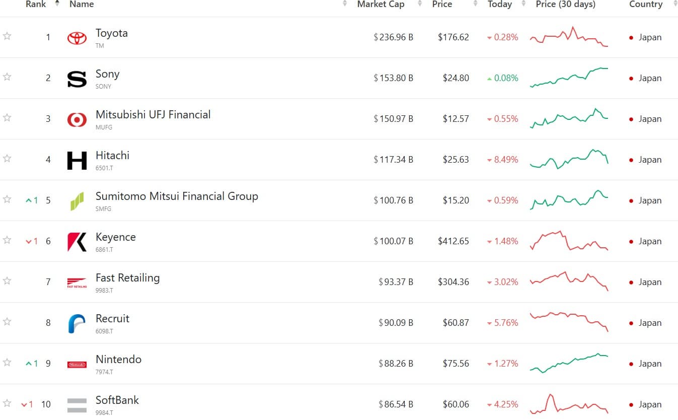 Sony сделала огромный шаг за 80 лет с момента основания и теперь занимает второе место среди крупнейших японских компаний с рыночной капитализацией в 149,32 миллиарда долларов.