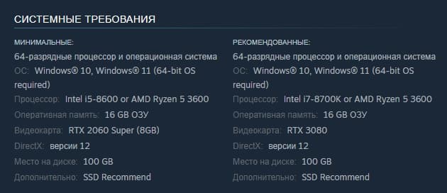 На жестком диске необходимо освободить 100 ГБ для установки игры, а для оптимальной производительности рекомендуется использовать SSD. Важно отметить, что AMD видеокарты в требованиях не указаны, но это не исключает их совместимость с игрой.