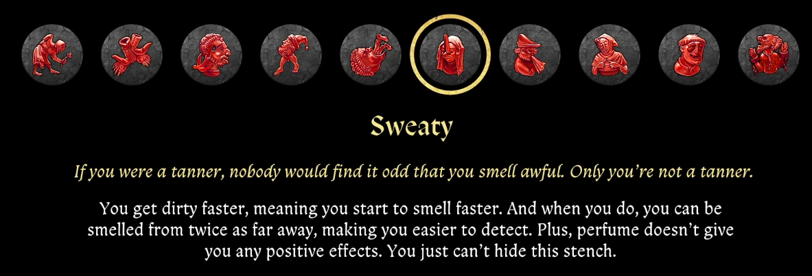 - «потливость» — главный герой будет быстрее пачкаться и сильнее вонять.