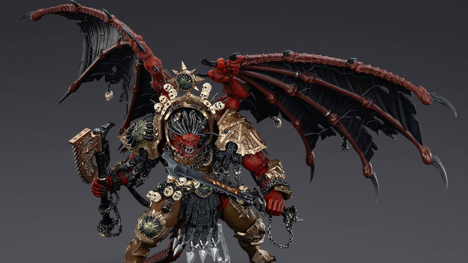 Культисты Хаоса уже вовсю скандируют фразу «Кровь Богу Крови! Черепа Трону из черепов!», так как компания JoyToy представила новую фигурку примарха Пожирателей Миров Ангрона из Warhammer 40,000, превратившегося в демон-принца Кхорна.
