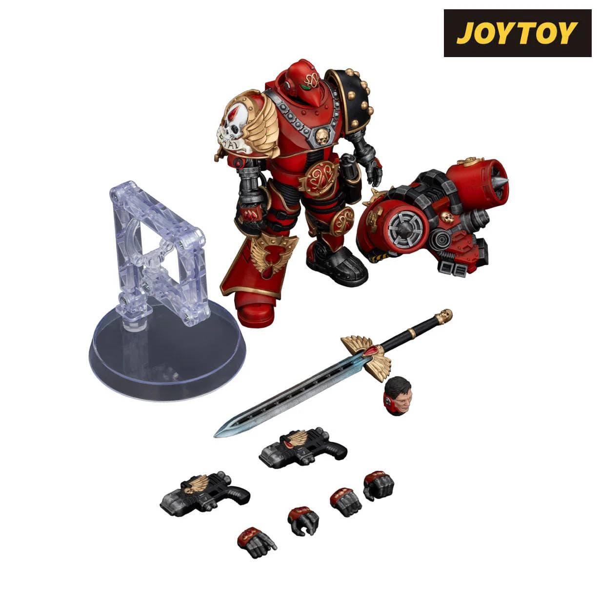 В комплекте удастся обнаружить прыжковый ранец, меч с широким лезвием «Спиритум Сангвис», волкитные пистолеты «Плач» и «Скорбь», подставку, две головы и несколько пар рук. Высота пластиковой фигурки равна 12,6 см, ширина – 7,8 см, глубина – 6,6 см.