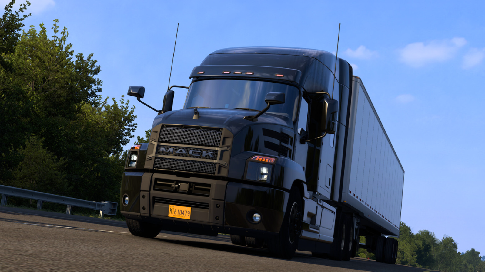 Для American Truck Simulator доступно бесплатное дополнение «Mack Anthem» — добавить его в библиотеку Steam можно по следующей ссылке. В игре эту редкую чёрную модель Mack Anthem тоже можно будет опробовать в деле.