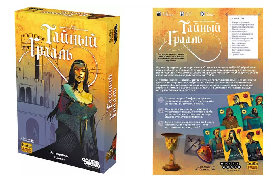 На складах настолка «Тайный Грааль» появится в конце апреля 2025 года, и в коробке удастся обнаружить 36 карт персонажей, шесть планшетов результатов, две карты приверженности, 20 карт похода, пять жетонов отряда, пять маркеров результатов, 10 карт-памяток, 36 жетонов персонажей, пять жетонов ветеранов, жетон лидера, жетон магии, три жетона амулетов, три жетона померкших амулетов и правила игры.