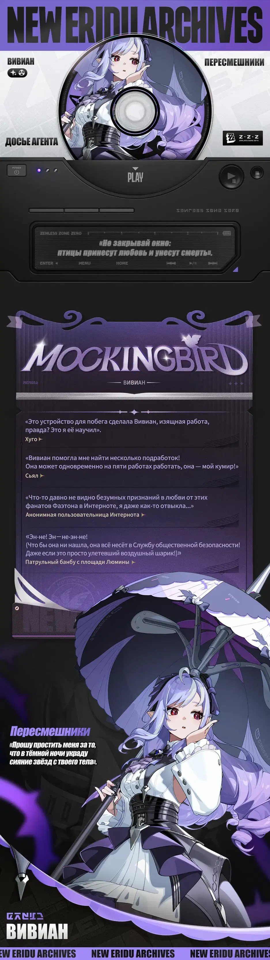 На этот раз в центре внимания оказалась Вивиан — играбельная героиня со специализацией Аномалия, её атрибут Эфир. Следившие за утечками ZZZ могли увидеть модель девушки ещё в начале года.