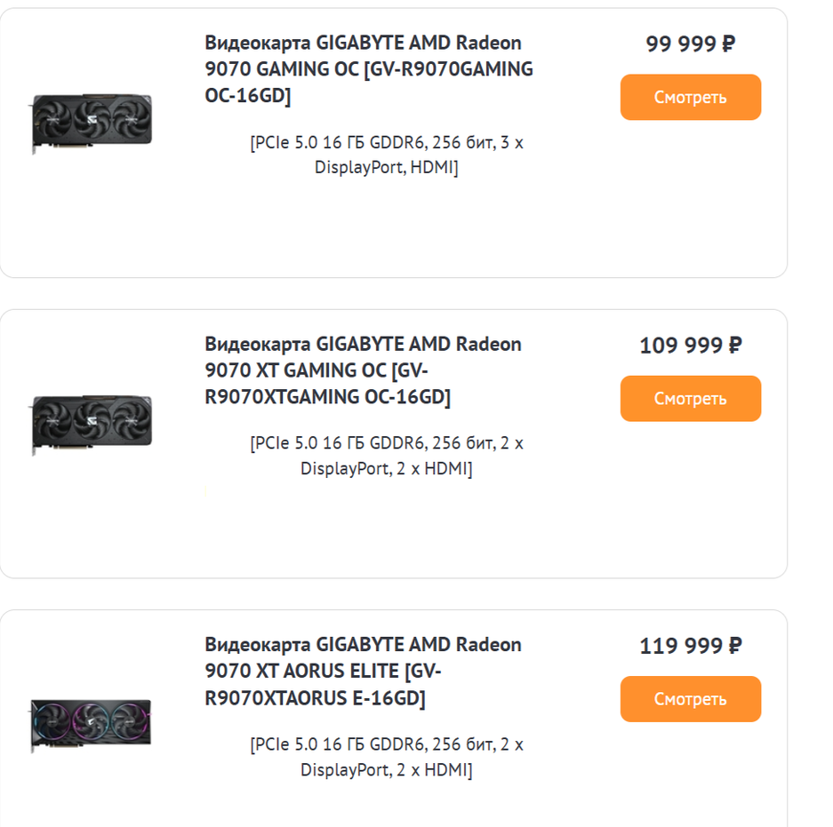 Порой встречаются и более скромные предложения, в пределах 85 – 100 тысяч рублей за Radeon RX 9070.