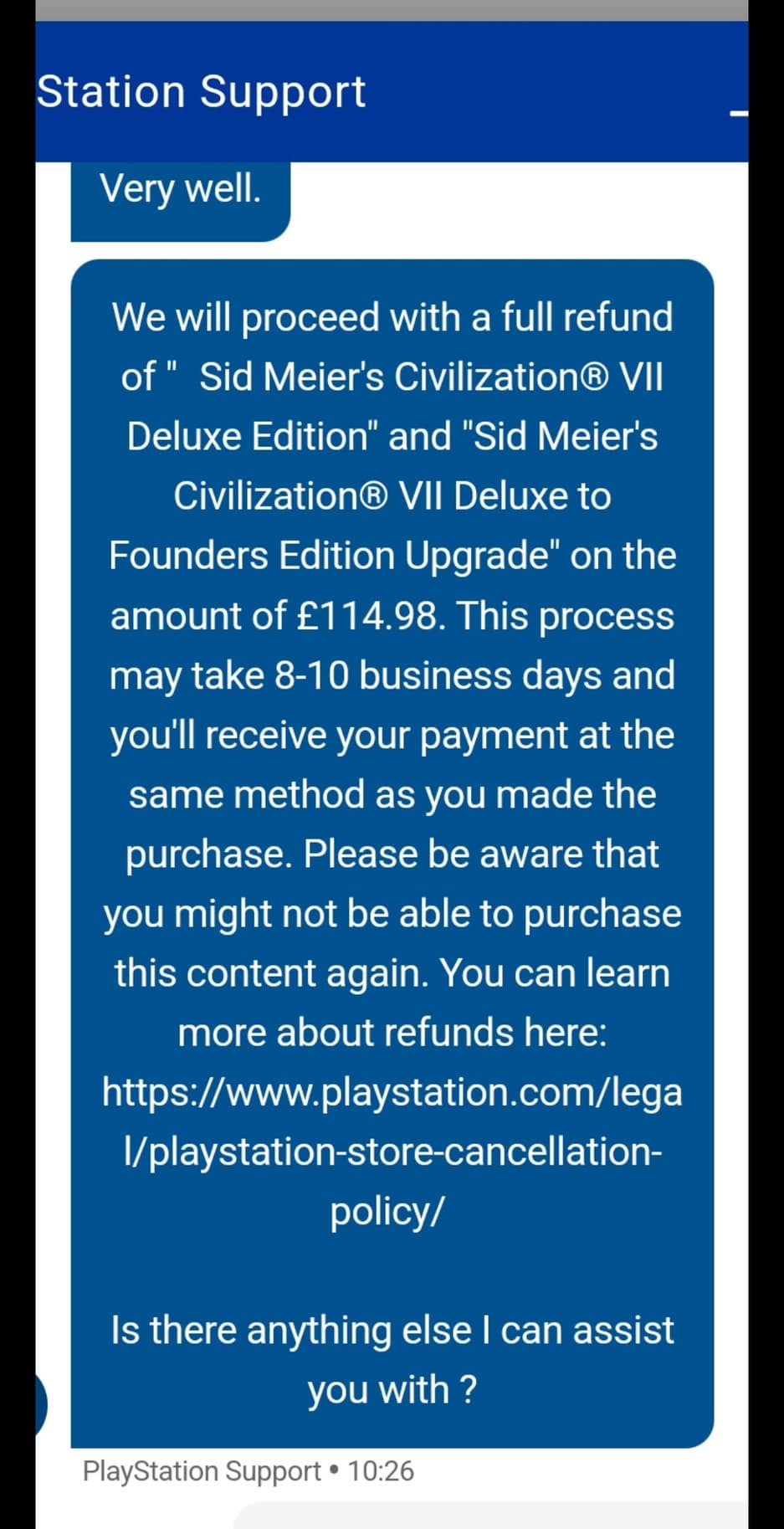 В ответ на запрос сотрудник PlayStation согласился вернуть деньги, несмотря на выход за рамки стандартной политики, отметив, что о проблеме расскажут разработчикам. Игрок получит средства в течение 8-10 рабочих дней.