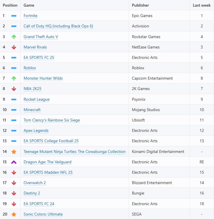 Для сравнения, Teenage Mutant Ninja Turtles: The Cowabunga Collection оказалась на 14-й позиции, обойдя Dragon Age на 8,2%. Даже Sonic Colors Ultimate показала лучший результат на 45,7%, превзойдя игру EA.