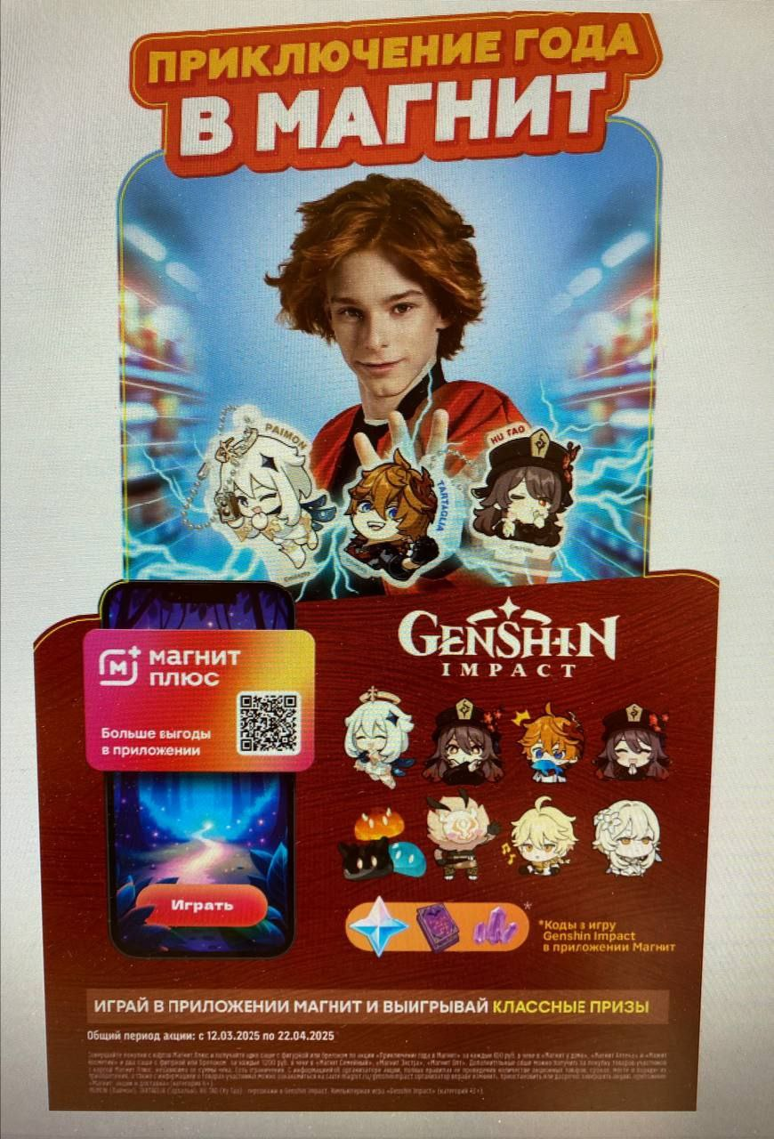 12 марта 2025 года в России запустили коллаб Genshin Impact и «Магнит» . Он стартовал не очень идеально, пользователи заметили «постыдную» ошибку в промо-материалах, быстро ставшую мемом.