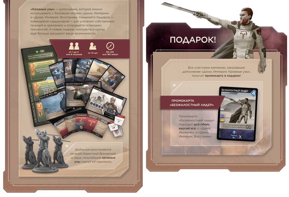 Издательство Lavka Games объявило о том, что открылся предзаказ на дополнение «Кровные узы» для настольных игр «Дюна. Империя» и «Дюна. Империя. Восстание». Прямо сейчас его разрешат купить за 3890 рублей.