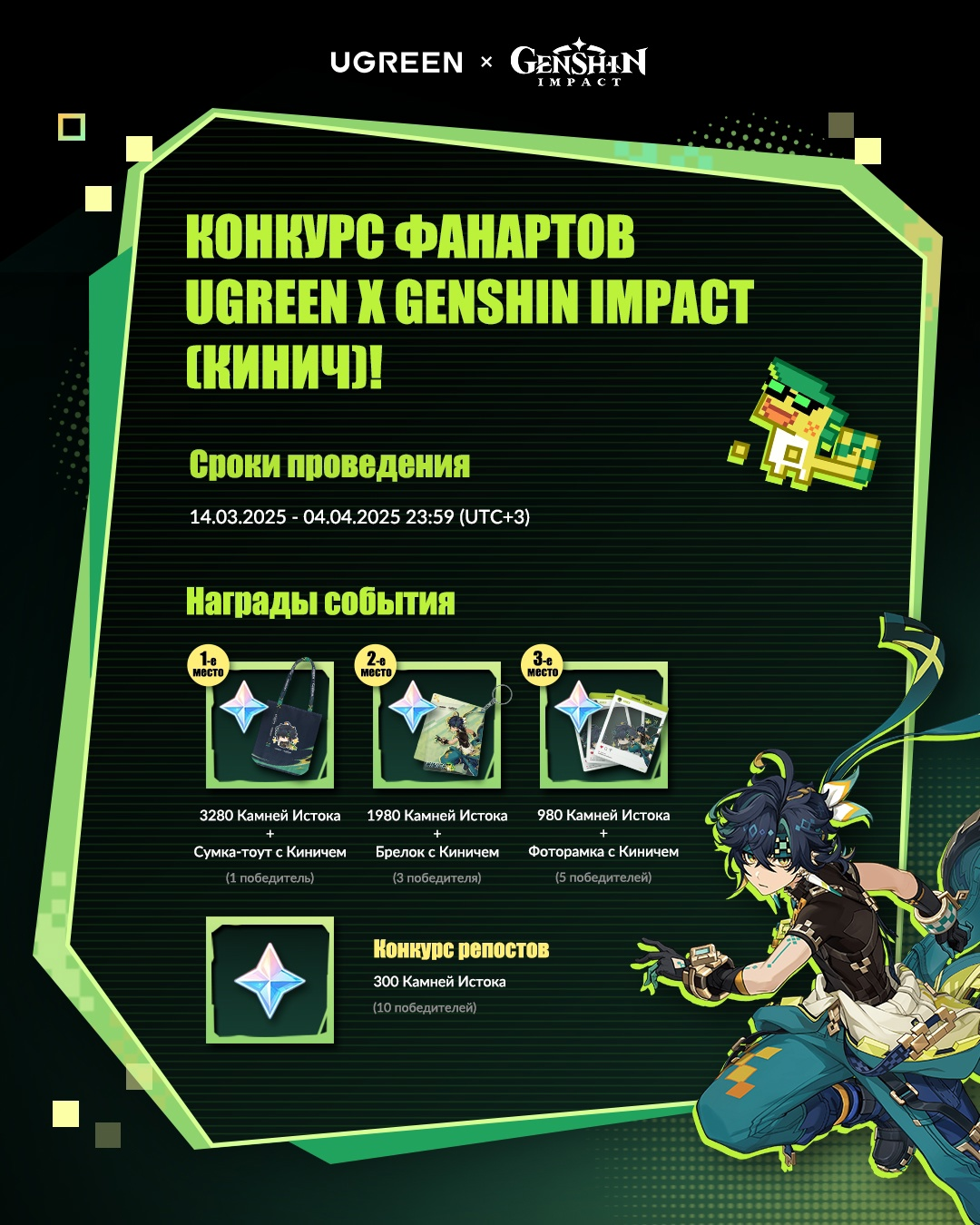 На этот раз коллаб Genshin Impact x Ugreen — организовали конкурс фанартов: