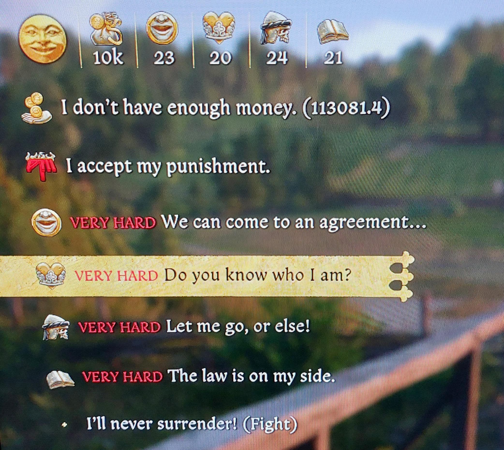 В средневековой Чехии у каждого поступка есть последствия: если поймают на месте преступления, можно попасть в тюрьму или заплатить штраф. Игрок утверждает, что не совершал ничего, стоящего такой суммы.
