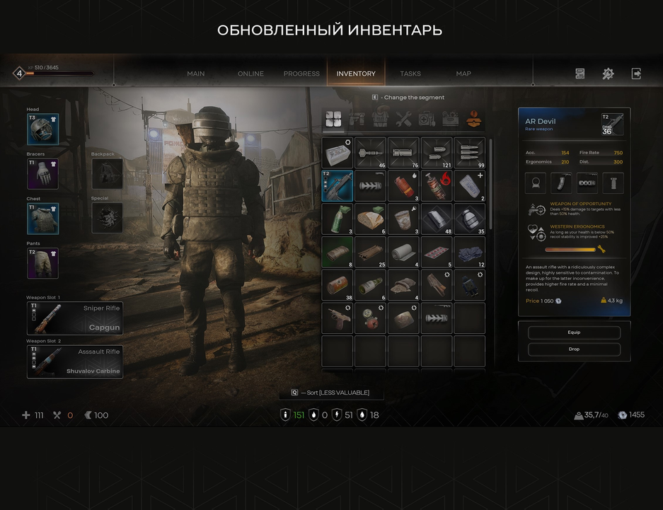 - Карточка предмета стала информативнее и получила больше информации, а важнейшая информация для оружия и брони теперь размещена более удобным образом