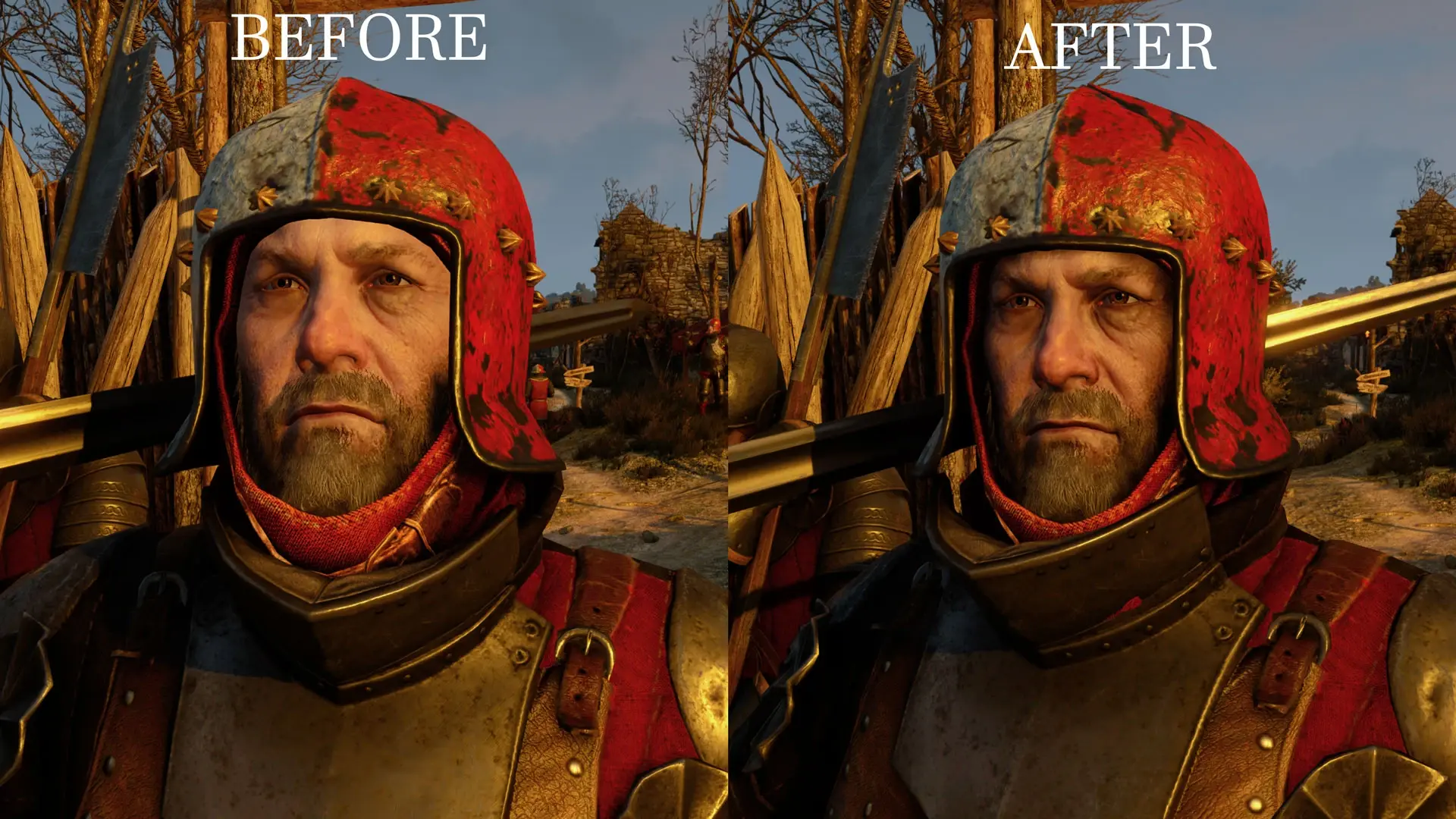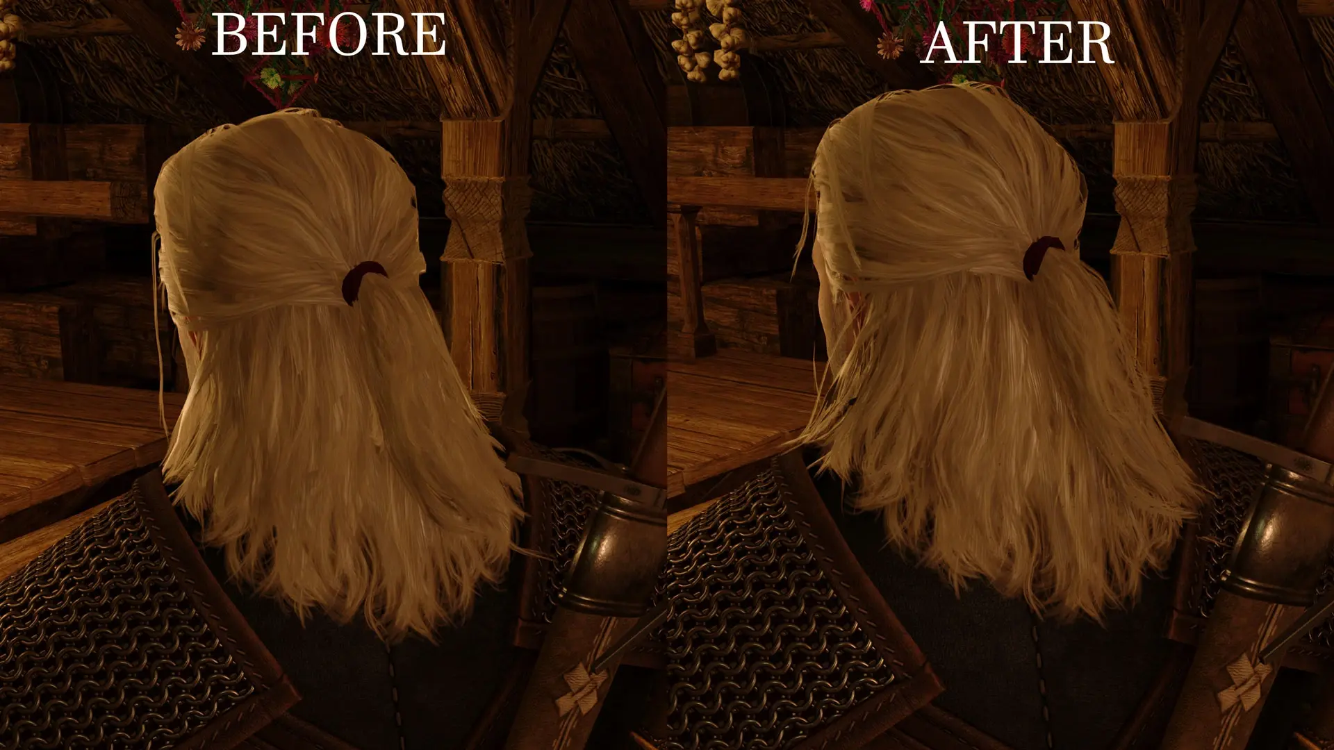 Техно-энтузиаст добавляет шейдер RTAO к коже и волосам персонажей / монстров (обсчёт освещения NPC при помощи трассировку лучей). BabaBooey88 отметил, что CDPR не включила некоторые RT-шейдеры для NPC. Нужные вычисления уже проводились, просто не отображались в игре.