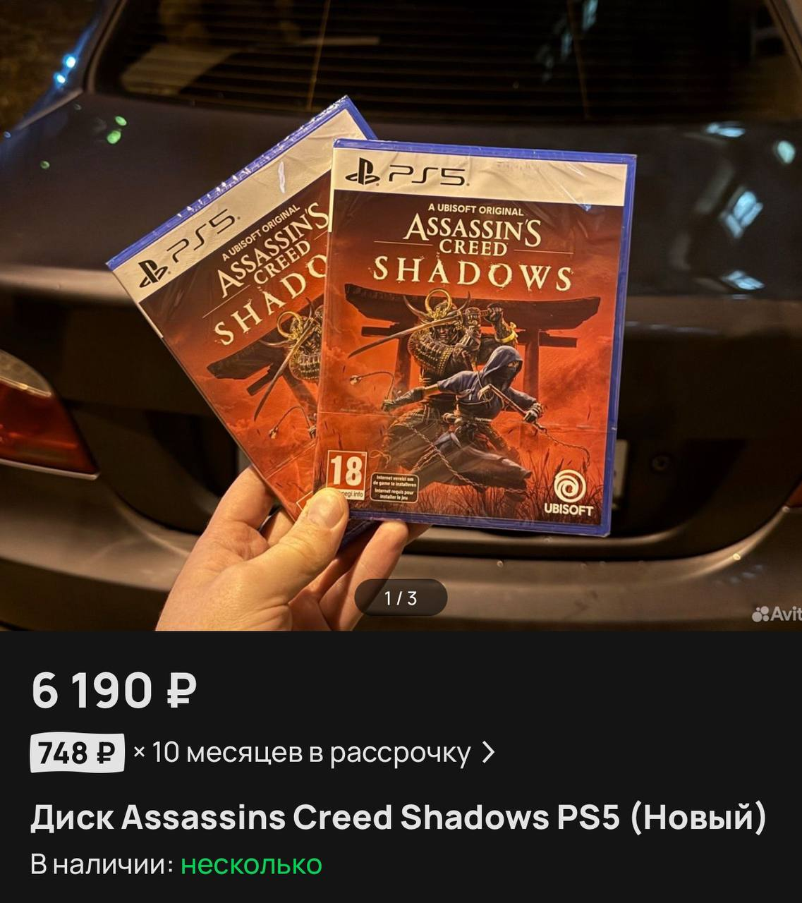 Однако незадолго до обозначенной даты релиза в сообществе «Волшебный сундучок» обратили внимание на то, что на «Авито» в России некие предприниматели уже предлагают купить диск Assassin’s Creed Shadows за 6 190 рублей.