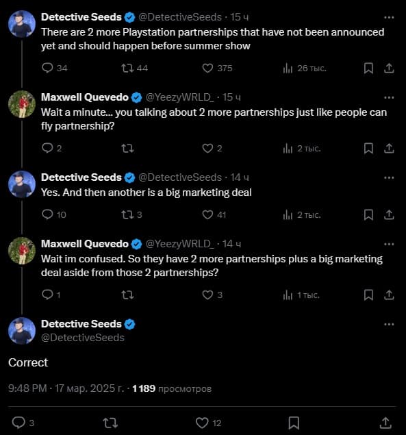 Sony работает над тремя крупными партнёрствами. Об этом сообщил информатор DetectiveSeeds. По его данным, два анонса состоятся до летних игровых мероприятий.