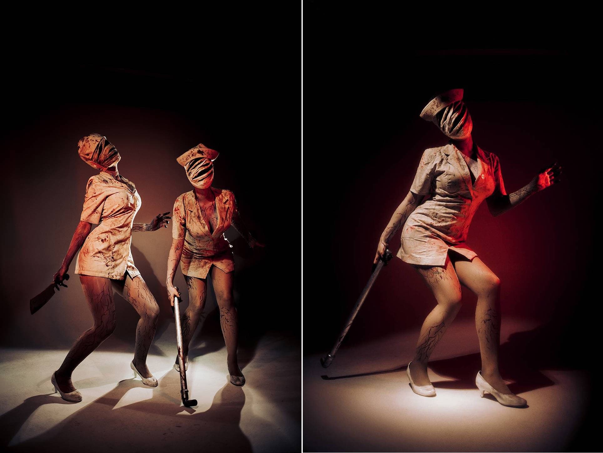 Косплееры Натали «Rosalinda» Лежнина, Тая «Strelochka» Баранова и Михаил Казанцев перевоплотились в монстров из хоррора Silent Hill 2, которых главных герой может повстречать в городе под названием «Тихий Холм».