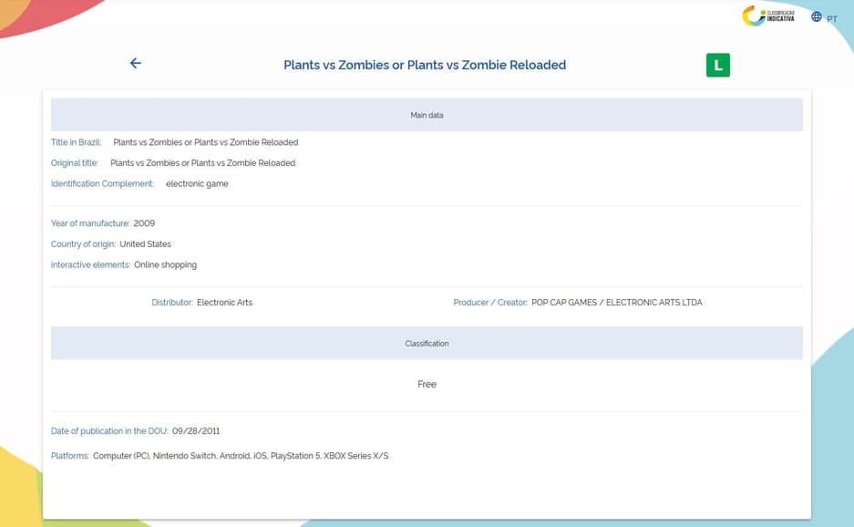 Судя по новой записи рейтингового агентства в Бразилии, Electronic Arts готовит релиз Plants vs Zombies Reloaded на ПК, PS5, Xbox Series, Switch, iOS и Android.