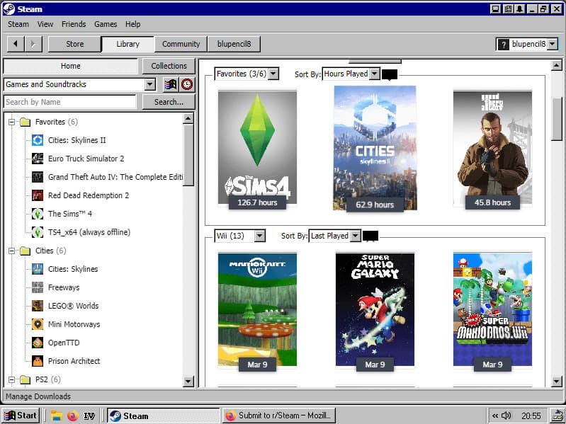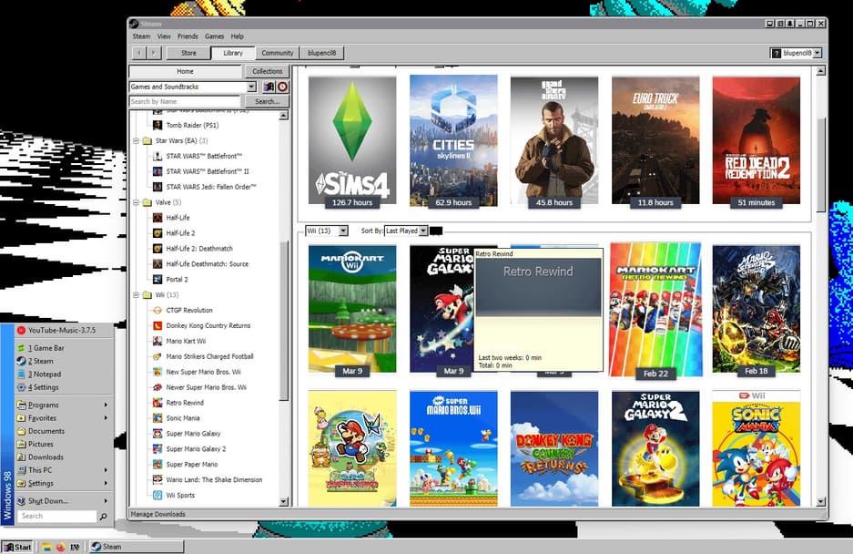 Пользователь Reddit с ником Blu-s_Attempt опубликовал концепт, демонстрирующий Steam в стиле Windows 98. Для этого он использовал программы Millenium, RetroBar, Open-Shell и WindowBlinds, позволяющие кастомизировать интерфейс.