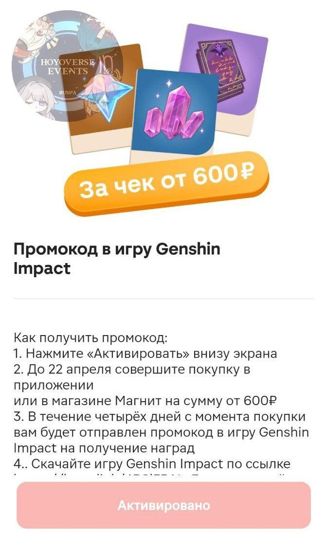 Этим дело не ограничится, есть возможность заполучить специальные коды для Genshin Impact. В сообществе «HoYoverse Events Russia» рассказали: